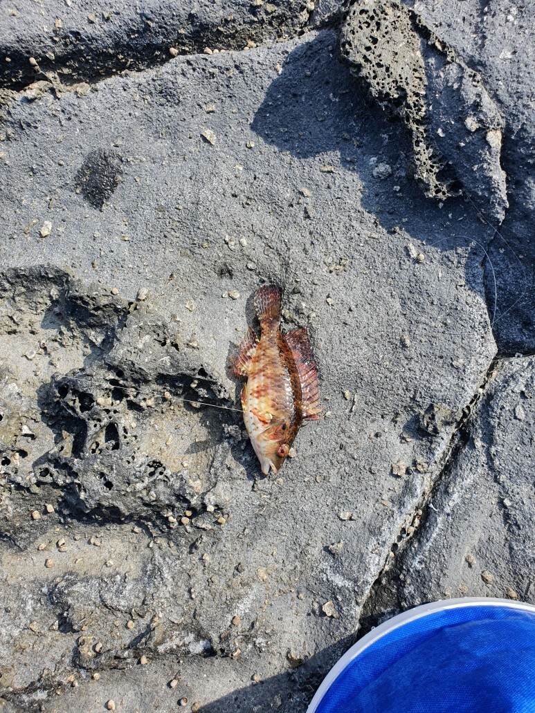그러다가 잡은 작은 쏨뱅이가 그래도 낚시의 시작을 알렸다. 첫수는 작지만 큰 출발이였다.